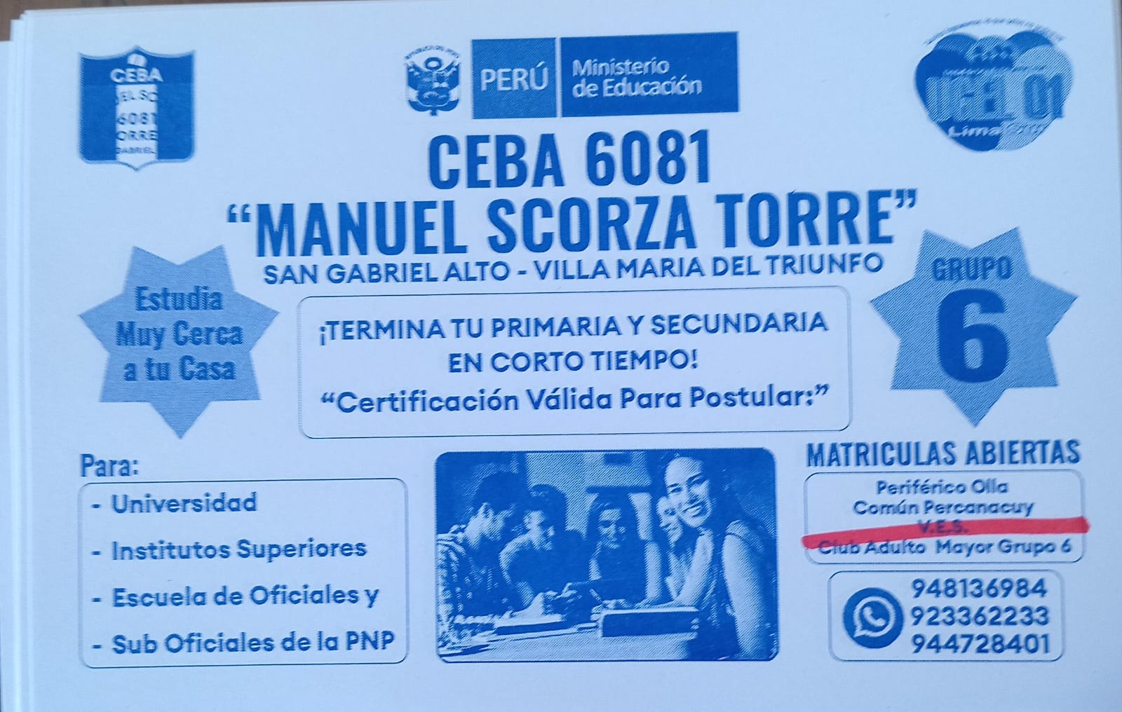 San Juan de Miraflores Centro de Educación Básica Alternativa pública de formación escolar adulta y laboral ubicado en la zona de San Gabriel Alto del distrito de Villa María del Triunfo, provincia de Lima.